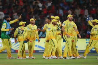 At the M. Chinnaswamy Stadium, Tim David unleashed a breathtaking assault, smashing eight sixes in a 25-ball unbeaten 70 to power Royal Challengers Bengaluru to a commanding 43-run win over Chennai Super Kings.After being put into bat, RCB piled up a daunting 250/3 — the highest total of the season — with key contributions from Virat Kohli (28), Phil Salt (46), Devdutt Padikkal (50) and skipper Rajat Patidar (48 not out).David’s late onslaught, including a brutal 30-run 19th over against Jamie Overton, helped RCB plunder 97 runs in the final five overs.In reply, Chennai Super Kings faltered early, losing captain Ruturaj Gaikwad cheaply. While Sarfaraz Khan (50), Prashant Veer (43) and Overton (37) showed resistance, the target proved too steep as they were bowled out for 207 in 19.4 overs.RCB’s bowlers, led by Bhuvneshwar Kumar’s three wickets, sealed a comprehensive win that keeps them atop the standings with two victories from two matches.After two action-packed double-header weekends, the tournament shifts gears with a single fixture on Monday, where Kolkata Knight Riders host Punjab Kings at Eden Gardens, aiming to avoid a third successive loss.