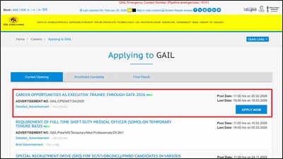 GAIL Executive Trainee Recruitment 2026: GAIL (India) Limited has published the notification for the recruitment of Executive Trainees via GATE-2026, which has 70 vacancies in four different disciplines of engineering. The Maharatna Public Sector Undertaking has invited applications from qualified engineering pass-outs in the disciplines of Chemical, Instrumentation, Electrical, and Mechanical engineering.The online application process has started from February 20, 2026 at 11:00 hrs and will continue until March 18, 2026 at 18:00 hrs. Candidates are advised to apply online through their GATE-2026 Registration Number only after reading the entire notification carefully.Vacancy details and disciplinesThe recruitment process will fill a total of 70 vacancies. Out of which, 17 vacancies are reserved for the post of Executive Trainee (Chemical), 21 vacancies for Executive Trainee (Instrumentation), 16 vacancies for Executive Trainee (Electrical), and 16 vacancies for Executive Trainee (Mechanical).The designation of the post is Executive Trainee in all four disciplines. The shortlisted candidates will be assigned to any location in India, as per organisational needs.Eligibility criteria and age limitThe applicants must have a B.E. or B.Tech degree in the same discipline with a minimum of 65 per cent marks and a valid GATE-2026 score.The required qualifications for the Chemical discipline include degrees in Chemical, Petrochemical, Chemical Technology, Petrochemical Technology, Chemical Technology and Polymer Science, and Chemical Technology and Plastic Technology. The Instrumentation candidates must have degrees in Instrumentation, Instrumentation and Control, Electronics and Instrumentation, Electrical and Instrumentation, Electronics, or Electrical and Electronics.The required degrees for Electrical discipline include Electrical, Electrical and Electronics, Electrical and Power, and Electrical, Electronics, and Power. The Mechanical candidates must have degrees in Mechanical, Production, Production and Industrial, Manufacturing, or Mechanical and Automobile.The maximum age limit is 26 years as of March 18, 2026. Age relaxation is allowed as per rules: five years for SC/ST, three years for OBC (NCL), 10 years for PwBD (General/EWS), 13 years for PwBD (OBC-NCL) and 15 years for PwBD (SC/ST).Pay scale and selection procedureThe selected candidates will be assigned a pay scale of Rs 60,000-1,80,000 in E-2 grade, with a basic pay of Rs 60,000 for a period of one year as training cum probation. After successful completion of the training cum probation period, they will be absorbed in the same pay scale and grade.The selection procedure includes short-listing based on GATE-2026 marks, Group Discussion, and/or Personal Interview. There is no application fee to be paid.