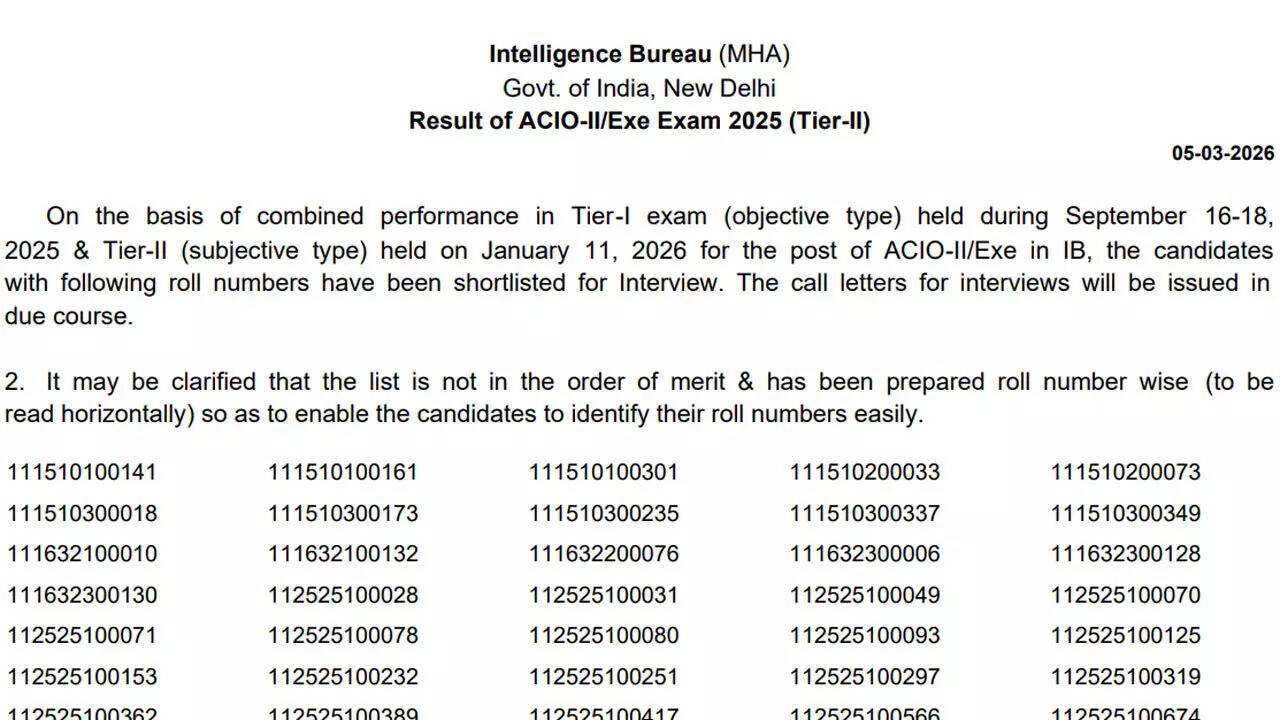 IB Tier-II result 2026: The Intelligence Bureau (IB), under the Ministry of Home Affairs (MHA), has officially published the Tier-II result for the Executive (ACIO Grade-II) recruitment. This marks a crucial milestone in the selection process for 3,717 vacancies nationwide, following the completion of the Tier-II descriptive examination. Candidates who cleared the Tier-I objective test and appeared for the Tier-II descriptive paper can now verify their qualifying status.The result has been made available in a detailed PDF, listing the roll numbers of candidates provisionally shortlisted for the Tier-III Interview. Graduates aspiring to join India’s premier internal intelligence agency now have a clear path toward the final selection stages. Applicants are advised to download the official PDF and check their roll numbers carefully.How to access the IB Tier-II resultThe official PDF containing the Tier-II results is hosted on the MHA website, mha.gov.in. Candidates can use the Ctrl+F search function to locate their roll numbers quickly within the list. The shortlist confirms eligibility for the next stage, which involves a comprehensive Tier-III Interview and Personality Test.Tier-III interview and evaluation detailsThe Tier-III Interview carries a weightage of 100 marks and serves as the final determinant before candidates move on to document verification and medical examination. Success in this round is essential to secure the position of Assistant Central Intelligence Officer (ACIO) Grade-II/Executive. The interview evaluates candidates’ suitability for a role within India’s internal intelligence operations, making it a critical phase of the recruitment process.Recruitment overview and vacanciesThis recruitment drive aims to fill 3,717 Executive posts across various IB offices in India. The selection process for the ACIO Grade-II position involves multiple stages: Tier-I objective test, Tier-II descriptive test, and the Tier-III Interview. Candidates who have progressed through each stage must now prepare for the final evaluation to complete the appointment procedure.Official advice for candidatesApplicants are encouraged to access the PDF immediately and verify their roll numbers to avoid missing deadlines. Careful preparation for the Tier-III Interview and Personality Test is recommended, as performance at this stage will decide final selection. The IB continues to emphasise adherence to official channels for updates and notifications throughout the recruitment process.