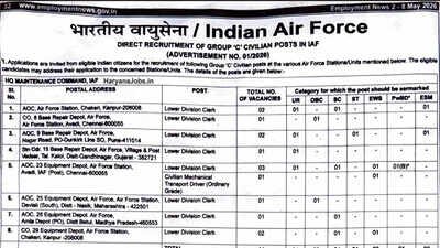 IAF begins offline application process for Group C civilian recruitment under Advt No 01/2026 IAF recruitment 2026: The Indian Air Force (IAF) has issued a notification inviting applications for 47 Gr...